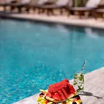 Słoneczny taras i zewnętrzny basen są dostępne za dodatkową opłatę. Można też dołączyć windsurfing, nurkowanie z rurką i kajakarstwo, a także samochody.